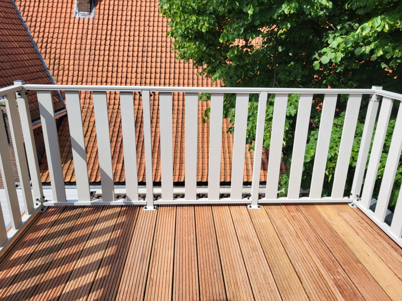 Houten handregel HH02Houten handregel HH02 heeft een dakje. Hierdoor kan regenwater makkelijk van de handregel aflopen. |