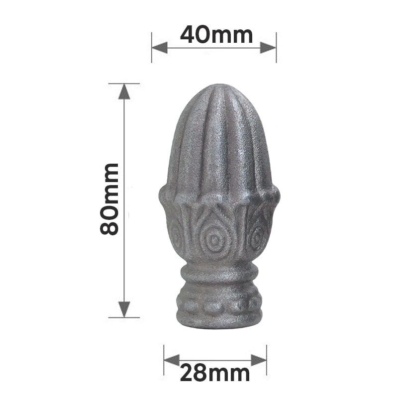 Elegante paalkop van 40x80 mm met een ronde voet van Ø 28 mm. De paalkop is goed verlasbaar en te verzinken. Merk Grande Forge.