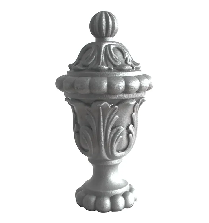 Zeer sierlijke en stijlvolle paalkop van het merk Grand Forge, leverbaar in twee verschillende materiaalsoorten: onbehandeld staal of verzinkt. De paalkop is zeer geschikt om te gebruiken als sierlijke afwerking aan de bovenkant van hekwerkpalen (staanders), kolommen of poorten.