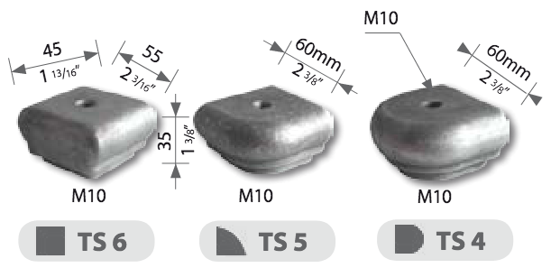 - Mogelijke voetvormenDoorlopende vorm (TS6), hoekvorm (TS5) of eindvorm (TS4)
