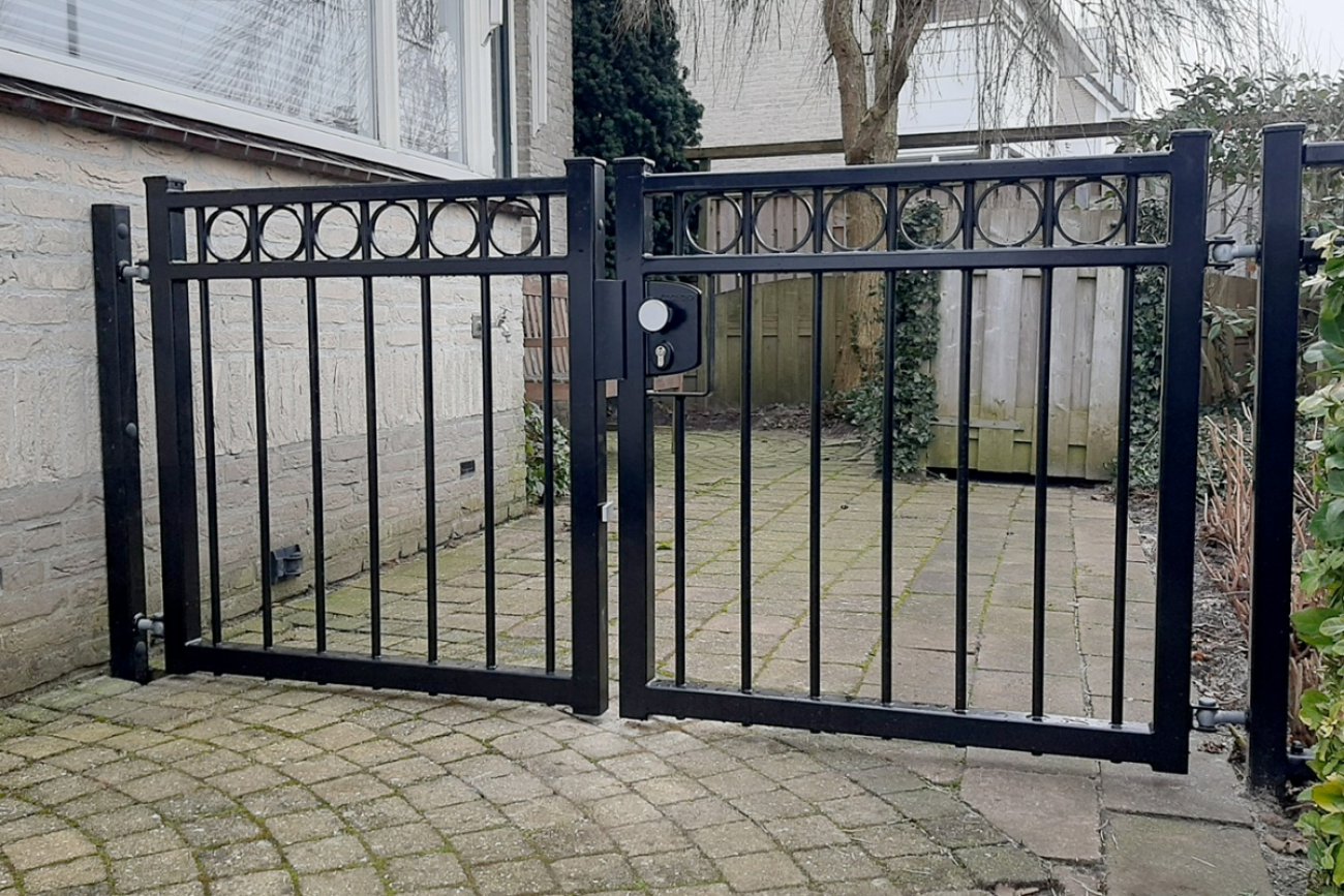 Deze looppoort is aan de bovenzijde voorzien van cirkels die de poort een sierlijke uitstraling geven. De poort wordt op maat gemaakt en kan daarom in iedere gewenste afmeting besteld worden. We leveren de poort zowel verzinkt als verzinkt en gecoat in een RAL kleur naar keuze.